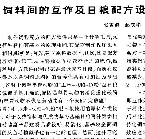 飼料間的互作及日糧配方設(shè)計中應(yīng)注意的問題 |