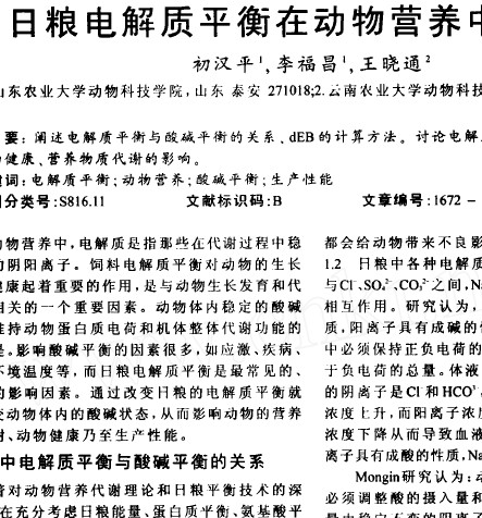 畜禽配方電解質(zhì)平衡文獻(xiàn) |