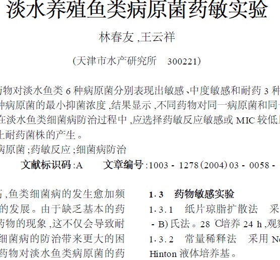 淡水養(yǎng)殖魚(yú)類(lèi)病原菌藥敏實(shí)驗(yàn) |