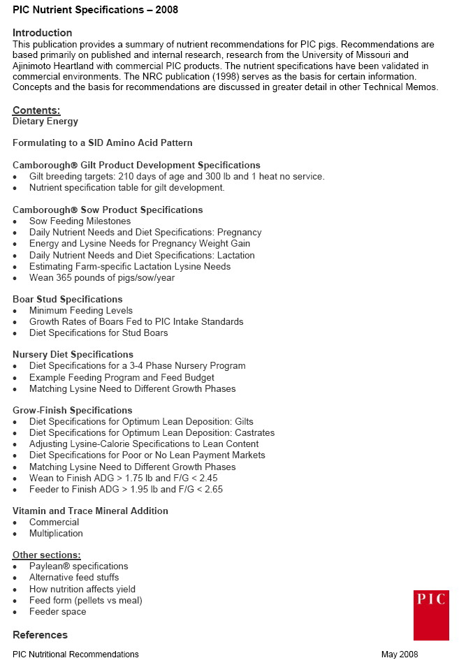 References下載地址: PIC Nutrient Specifications (PIC豬營(yíng)養(yǎng) 2008)