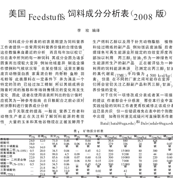 美國(guó)Feedstuffs飼料成分分析表 2008年中文版 |