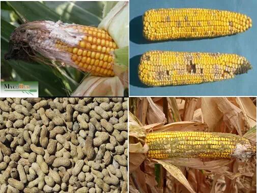 玉米受霉菌感染的程度與水分、成熟度、破碎度有很大關(guān)系;串珠鐮孢菌毒素的含量,破碎及其它谷物廢料中的霉菌毒素是整粒谷物的30-500倍。