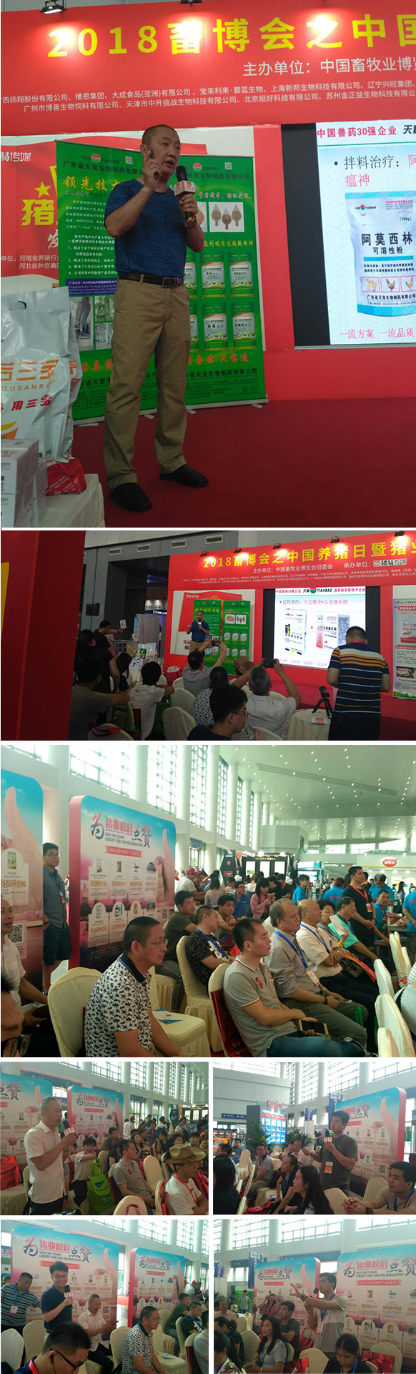 圖為天寶帶您一起看圖識病專場,講課的向湘春教授是高級獸醫(yī)師、執(zhí)業(yè)獸醫(yī)師、擁有33年豐富的臨床實踐經(jīng)驗,他分享了豬瘟、圓環(huán)病毒、霉菌毒素、豬傳染性胃腸炎等8類豬場常見的豬病病例圖片、發(fā)病特點及防控方案,聽眾們紛紛搶答提問、拍照記錄,很多觀眾全程站在場外聽課,現(xiàn)場學習氣氛熱烈。