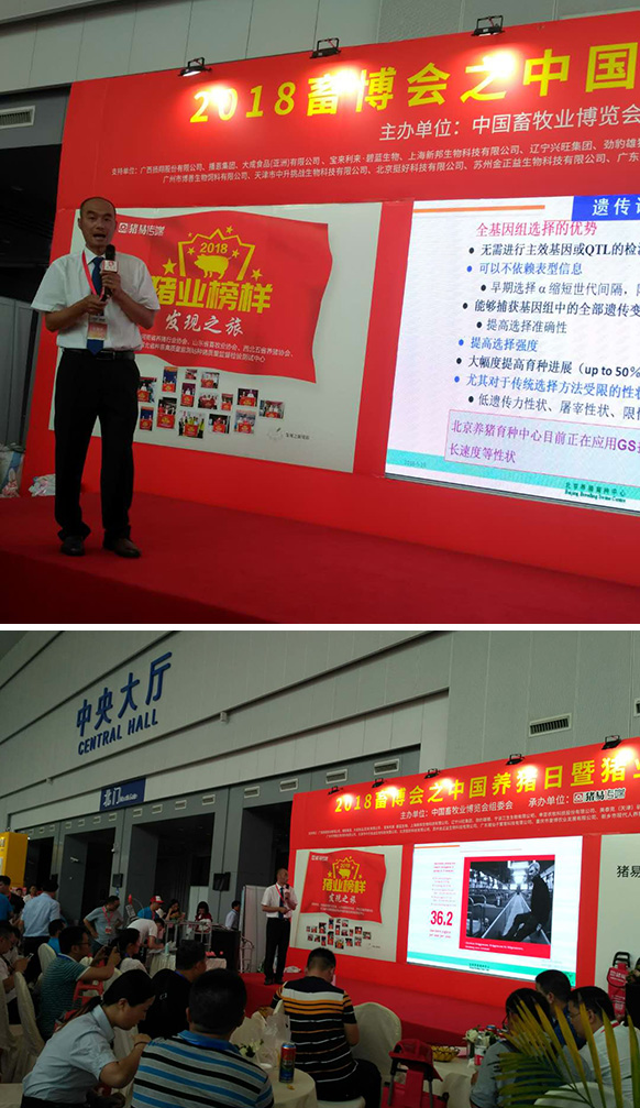 圖為北京養(yǎng)豬育種中心教您如何選育種豬及規(guī)?;i場高效育種措施專場活動,武建亮博士做了分享,高深的育種技術結合實踐措施,武博士娓娓道來,聽眾們在聽到一些沒理解的地方會主動舉手提問,更有些聽眾注精會神聽的同時還全程手機拍攝視頻記錄,老師講的專業(yè),聽眾專業(yè),均深切感受到了畜博會養(yǎng)豬日暨豬業(yè)榜樣日的專業(yè)。